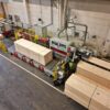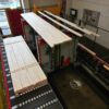 Hobel- und Kehlautomat Weinig Typ Powermat 2400 zum vierseitigen hobeln und profilieren von Hölzern inklusive Einlaufmechanisierung Weinig High Mech E 1 und Auslaufmechanisierung mit Paternosterstapelautomat Sicko.