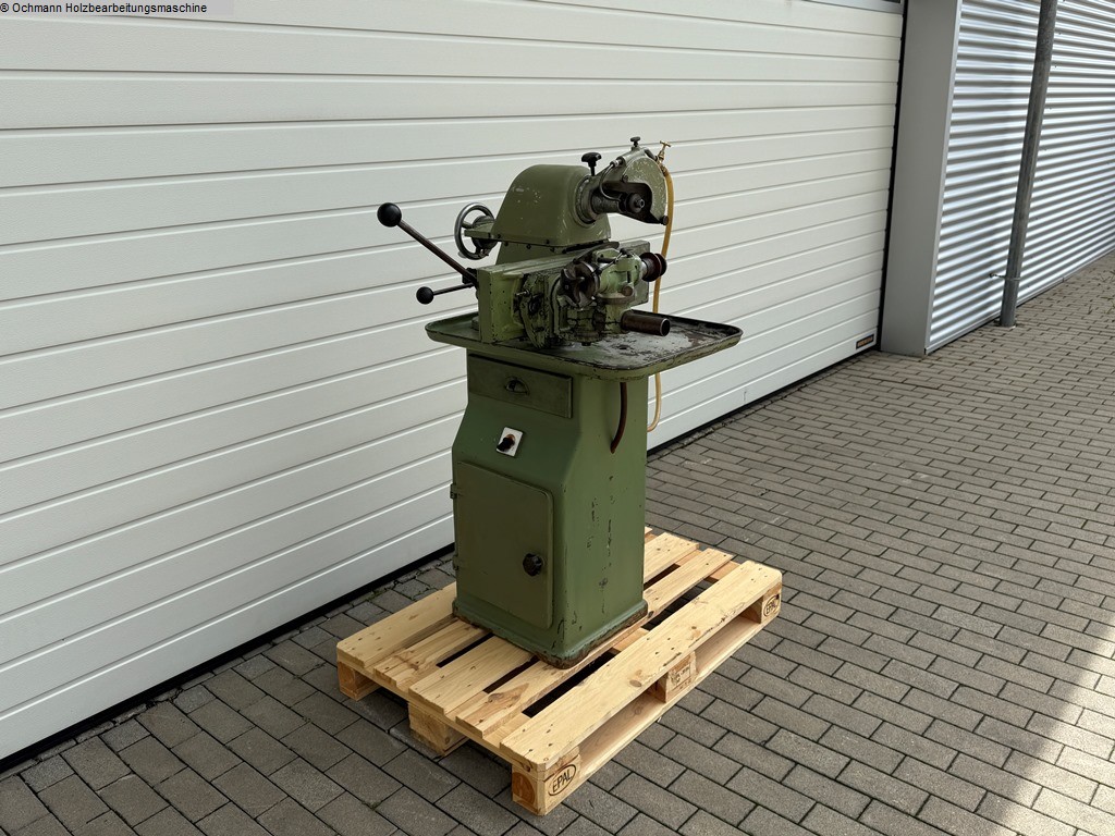 Werkzeug-Schärfmaschine mit Kühlmittelpumpe. Nach Einstellung des korrekten Schleifwinkels wird das Werkzeug mittels manuellem/linearen Vorschubs, geschliffen.