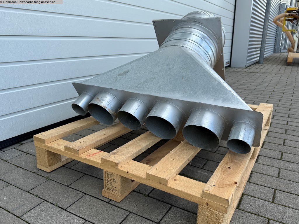 Absaugsammler mit 6 Anschlüssen und elektrischem Schieber. Der Schieber ist reparaturbedürftig.