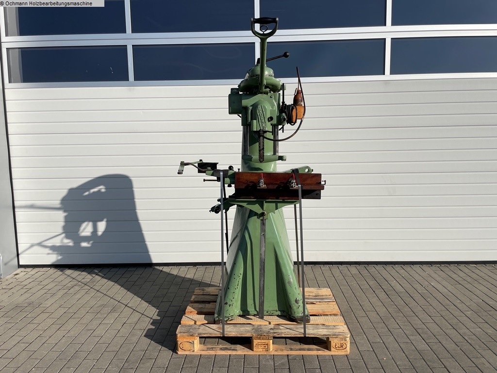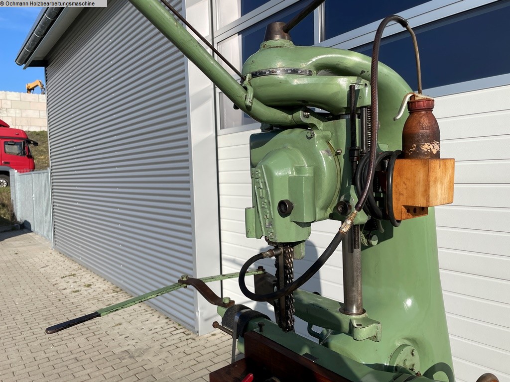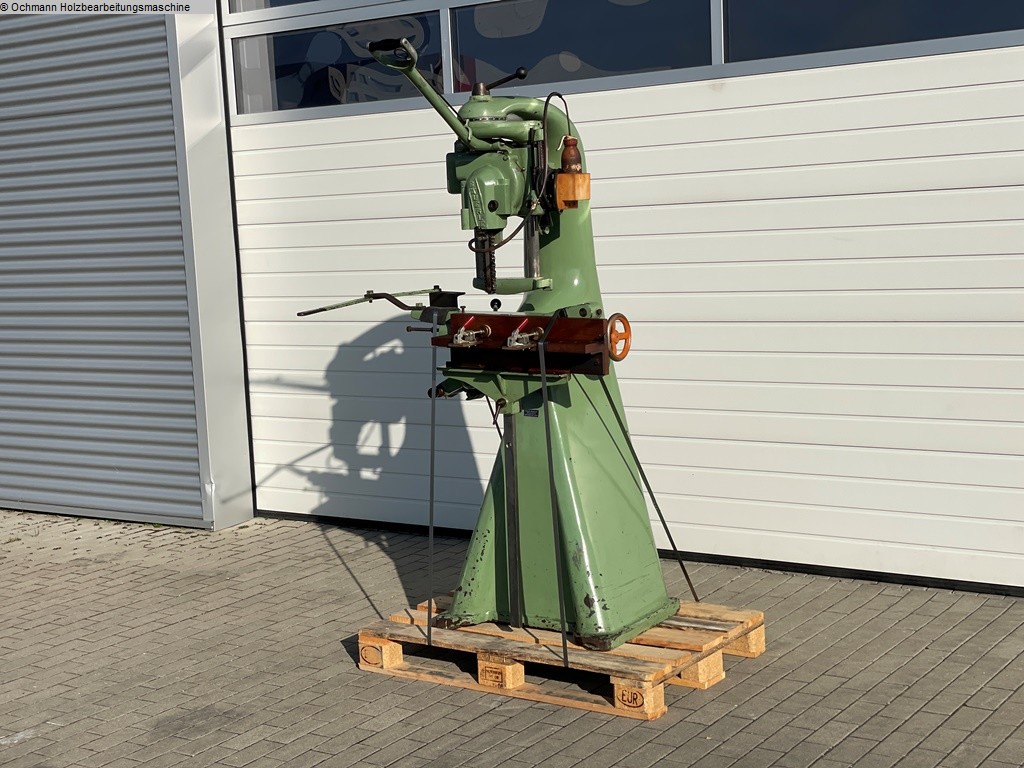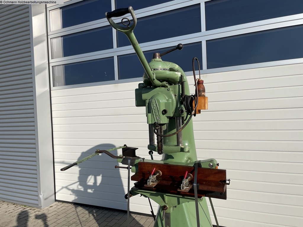 Kettenfräse / Kettenstemmer Bäuerle zum ausfräsen von Schlosskästen oder anderen Beschläge mit schwenkbarem Tisch und schwenkbarem Fräsaggregat.