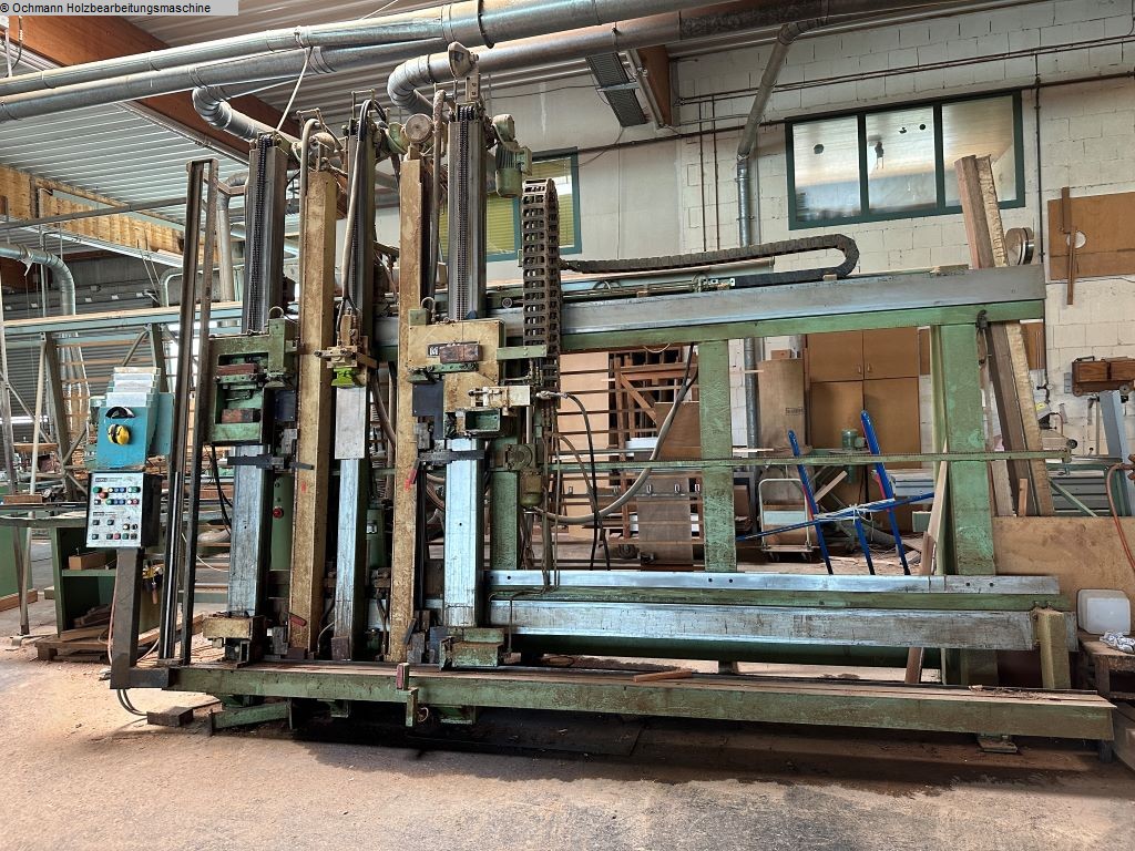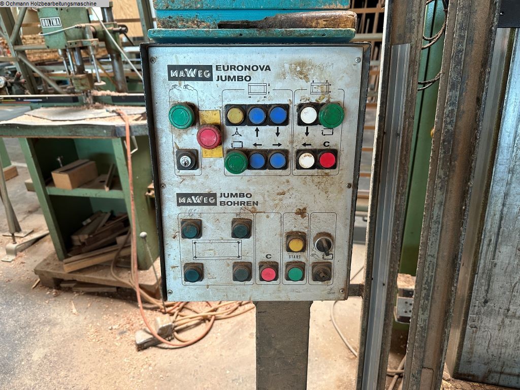 Hydraulische Rahmenpresse MAWEG JUMBO mit elektrischer Verstellung und integrierten Bohraggregaten.