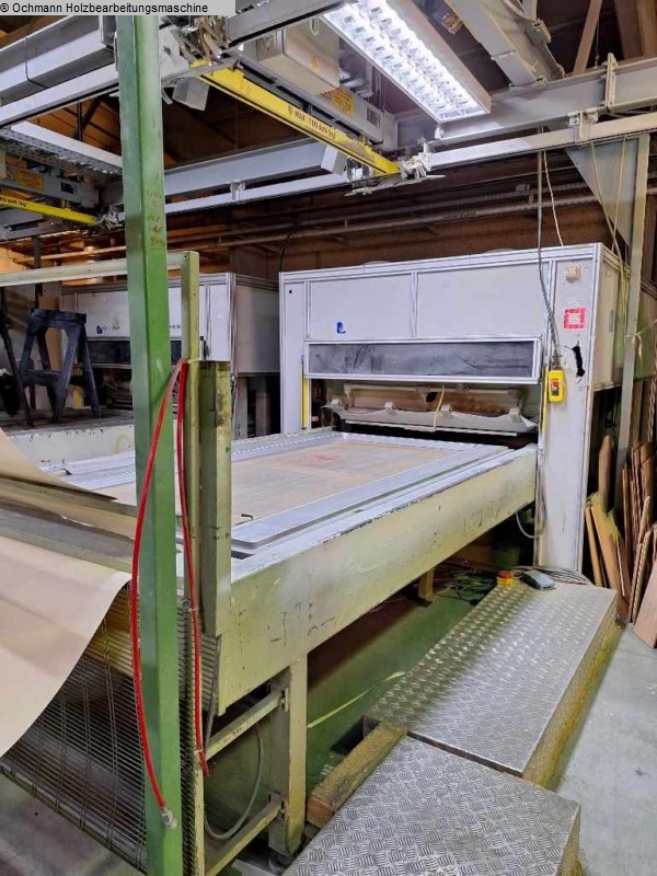 Membranpresse Orma PM/AFT zum Beschichten von einseitig profilierten Werkstücken mit automatischem Be- und Entladesystem.