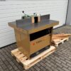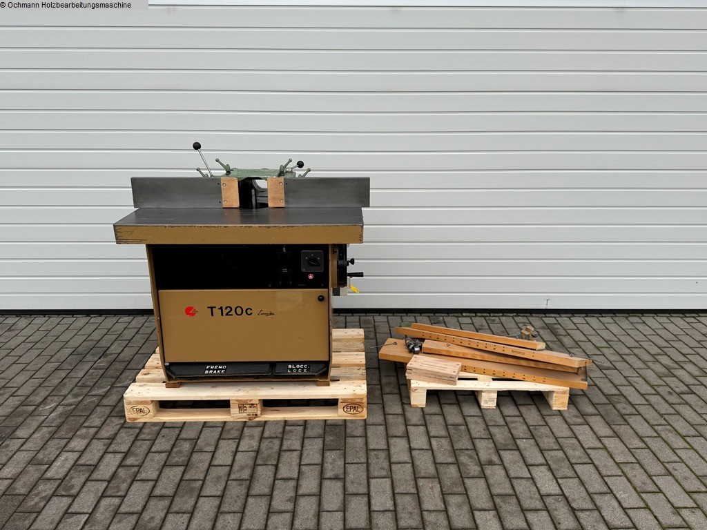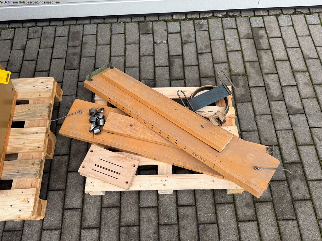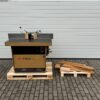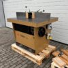 Eine Starre Tischfräse oder Starrfräse Bäuerle Typ SFM zum Profilieren und Fräsen von Hölzern, ausgestattet mit diversem Zubehör.