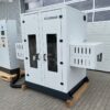 Doppelseitige (oben / unten) Schleifmaschine Stähle Hess Saturn Roto Finish zum Feinschleifen von Fensterkanteln oder anderen Hölzern. Zwei Aggregaten mit jeweils mehreren planschleifenden, rotierenden Werkzeugen, die sich zusätzlich mit dem Schleifaggregat um die eigene Achse drehen und so ein Kappen der Holzfasern erreichen mit einfacher Einstellung der Holzart. Anwendung z.B. als Schleifmaschine nach Hobelmaschine in einer Fensterfertigung.