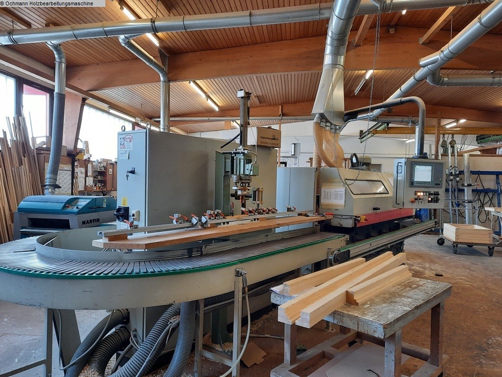 Kombinierte Zapf, Schlitz und Umfälz Winkelanlage Weinig UC 10, zur flexiblen Herstellung von verschiedenen Fenstern, Elementen und Türen ohne Werkzeugwechsel. Rahmenweise, serienweise oder Einzelteilefertigung, Inklusive Werkzeugsatz Oertli Holz/Alu IV 77 + 67 sowie Holz IV 77 + 67.
